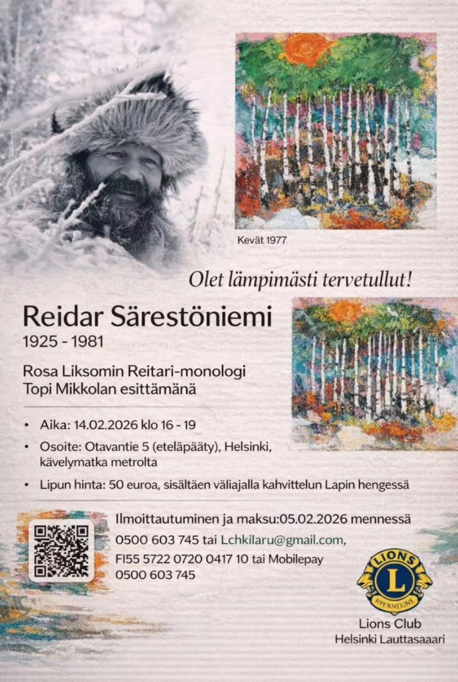 Lipun hinta 50€, sisältäen väliajalla kahvittelun Lapin hengessä.